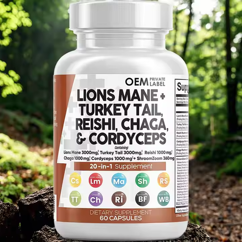 Özel etiket fabrika kaynağı Lions Mane mantar kapsülleri 20 in 1 mantar kapsülleri destek vücut sağlığı